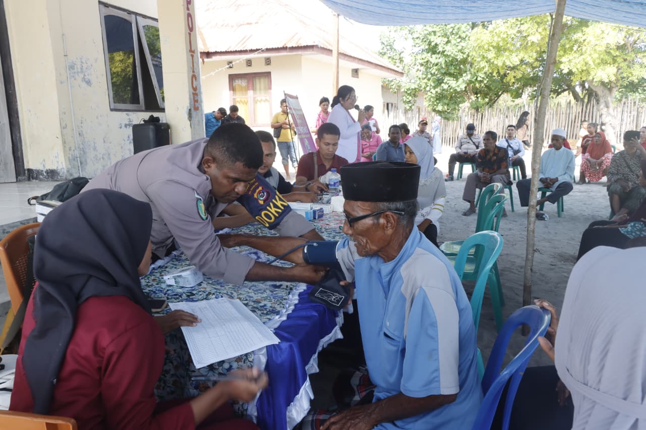 Bhakti kesehatan terlaksana melalui kolaborasi antara tenaga kesehatan dari Puskesmas Karera, Urusan Dokkes Polres Sumba Timur, serta Bhayangkari Cabang Sumba Timur yang juga memiliki latar belakang sebagai tenaga medis.